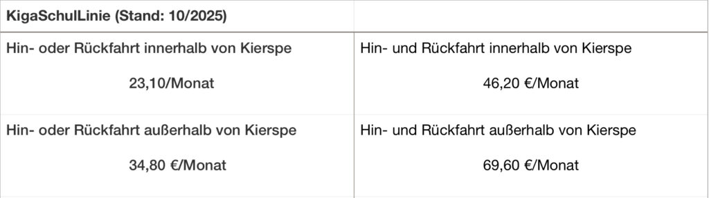 Eine einfache Fahrt kostet derzeit 2,40 €, eine Vierkarte 9,00 € (Stand: Oktober 2025).